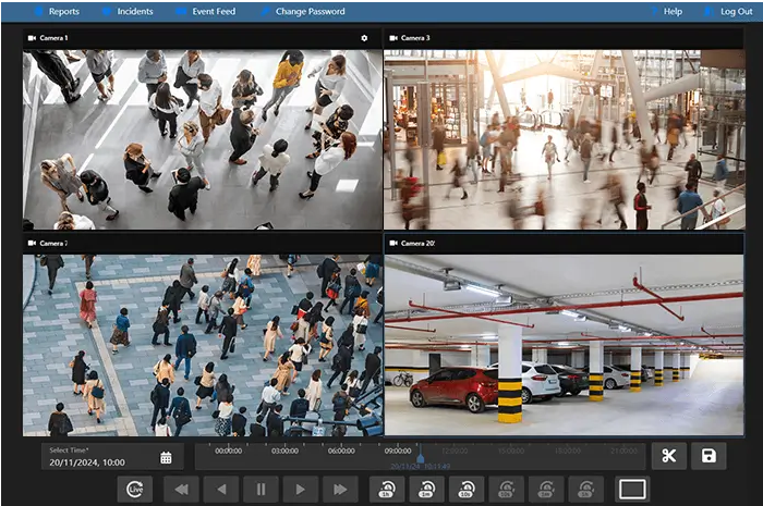 View recorded footage, which is essential for incident review, investigations, and compliance purposes. You can navigate through recordings to specific time frames or events.